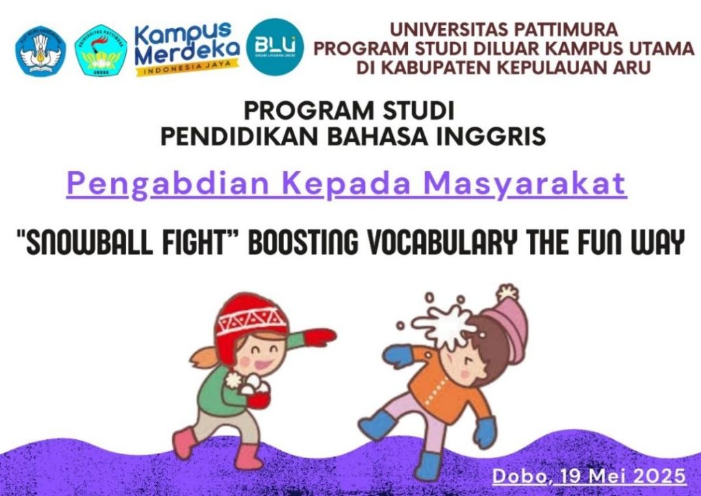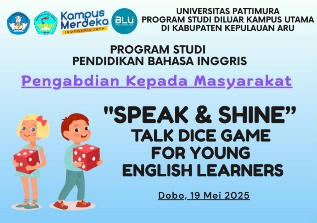Pada tanggal 19 Mei 2025, Program Studi Pendidikan Bahasa Inggris PSDku Aru melaksanakan kegiatan Pengabdian kepada Masyarakat (PkM) di SD Kristen Dobo dengan melibatkan dua tim mahasiswa dan dosen. Kegiatan ini bertujuan untuk memperkenalkan pembelajaran bahasa Inggris yang menyenangkan dan komunikatif kepada siswa sekolah dasar melalui pendekatan berbasis permainan dan aktivitas interaktif.